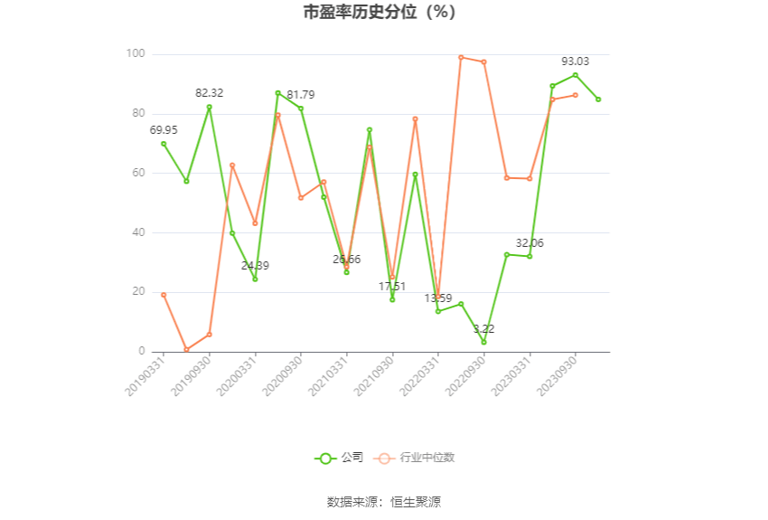 市盈率为负时,不显示当期分位数,会导致折线图中断。