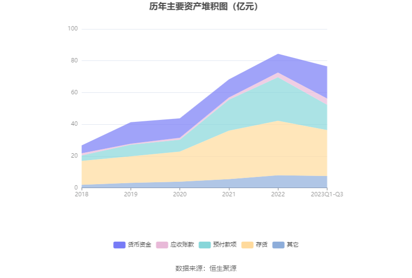 资产重大变化方面,截至2023年三季度末,公司货币资金较上年末增加72.00%,占公司总资产比重上升12.52个百分点;预付款项较上年末减少41.89%,占公司总资产比重下降11.65个百分点;存货较上年末减少15.70%,占公司总资产比重下降2.86个百分点;应收账款较上年末增加34.42%,占公司总资产比重上升1.68个百分点。