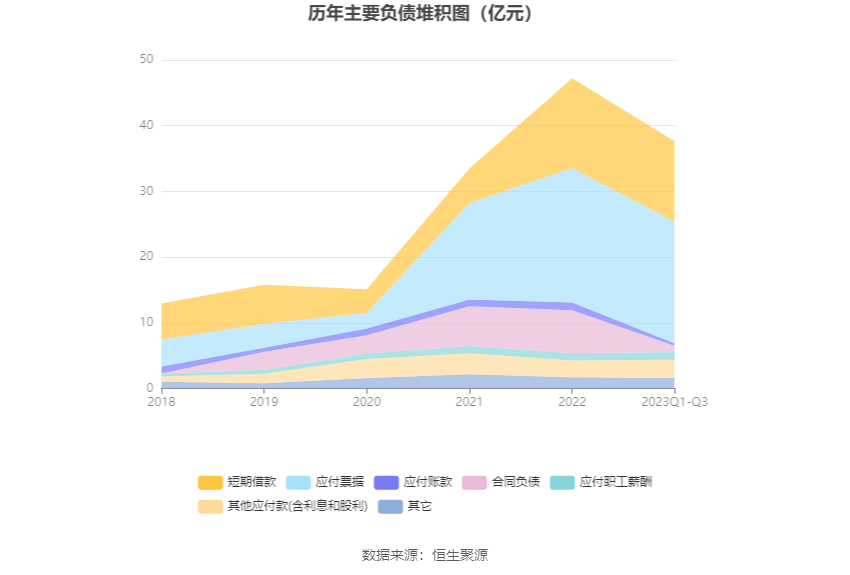 负债重大变化方面,截至2023年三季度末,公司合同负债较上年末减少85.62%,占公司总资产比重下降6.52个百分点,主要系预收客户的货款减少;应付票据较上年末减少9.71%,占公司总资产比重下降0.10个百分点;短期借款较上年末减少10.32%,占公司总资产比重下降0.18个百分点,主要系本期偿还期初贷款;应付账款较上年末减少68.77%,占公司总资产比重下降0.94个百分点,主要系本期支付年初应付供应商的货款。