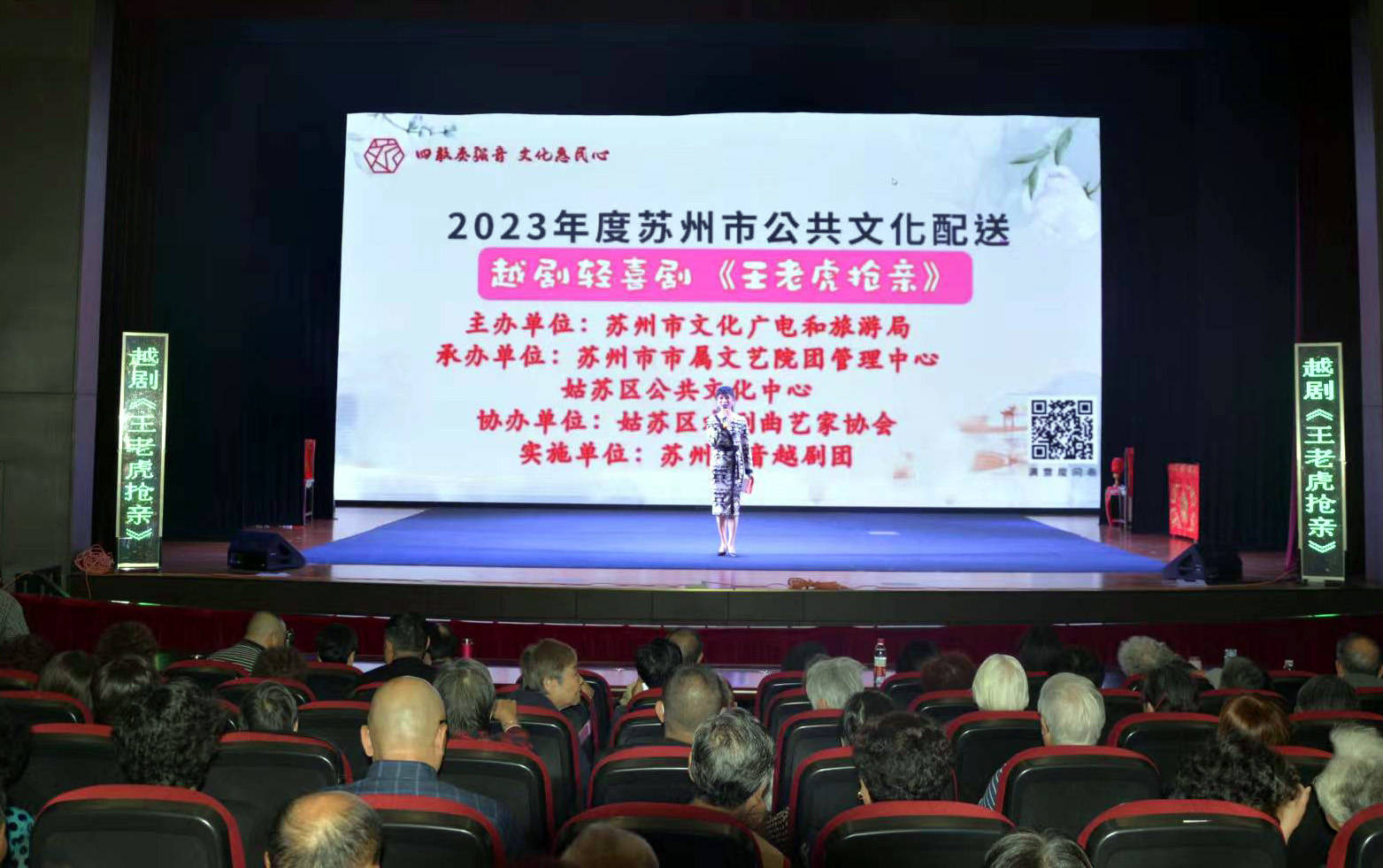 金秋十月,天高气爽,蟹肥菊黄,稻谷飘香。在这丰收的季节又一年重阳节将至,为弘扬中华民族尊老、敬老优良传统,营造欢乐喜庆、温馨和谐的重阳氛围,10月23日下午,由苏州市文化广电和旅游局主办,苏州市市属文艺院团管理中心和姑苏区公共文化中心承办,姑苏区戏剧曲艺家协会协办,苏州弘音越剧团演出的越剧轻喜剧《王老虎抢亲》在苏州戏曲传承中心上演,陪伴老人们度过了一个愉快的“重阳节”。