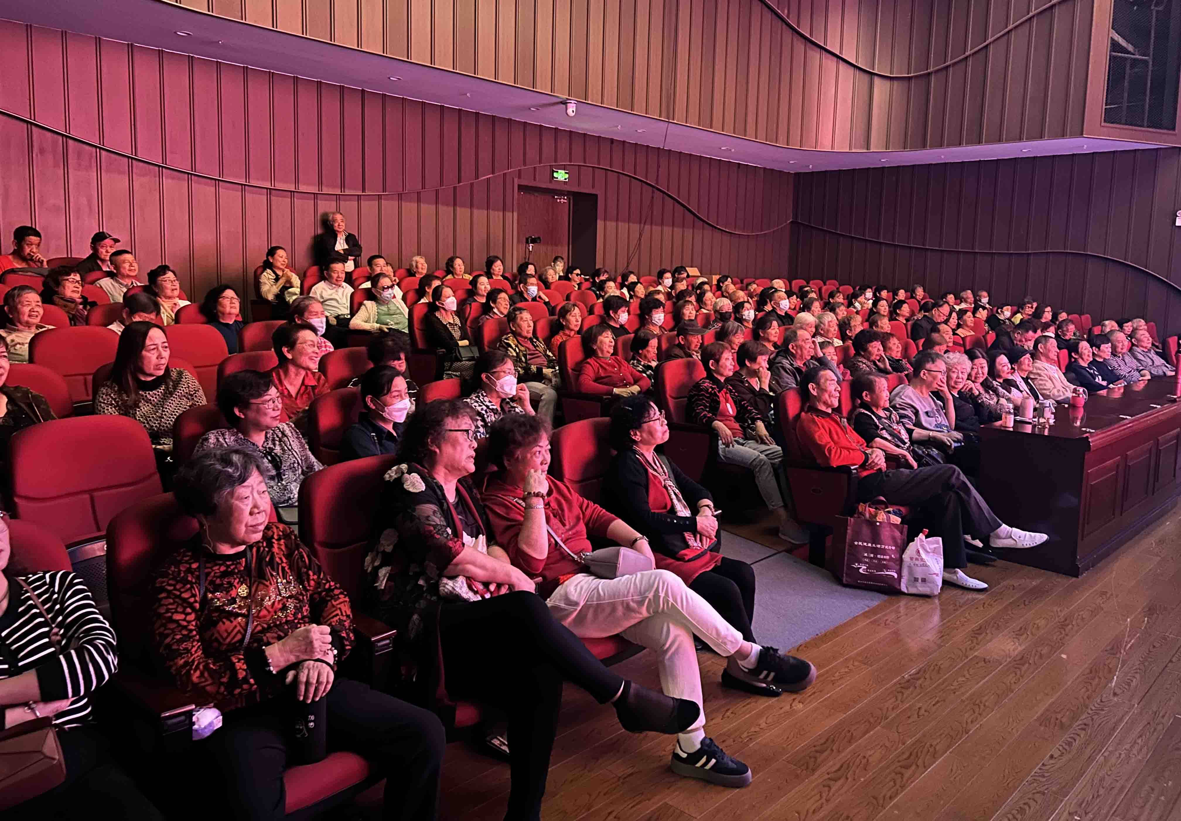 当日下午,来自苏州城区及周边200多位老人和越剧粉丝,他们早早来到苏州戏曲传承中心,满怀着喜悦的心情,聚精会神地欣赏了由江苏省优秀团队,苏州市公共文化配送“双十佳”单位——苏州弘音越剧团带来的2023年度苏州市文化配送项目《王老虎抢亲》。台上演员基本功扎实,唱腔婉转流畅,字正腔圆,宛如天籁之音,情感真挚深沉,真正让越剧爱好者们感受到优秀传统文化的魅力,过了一把瘾。台下观看演出的老人们热情高涨,掌声和喝彩声起伏不断,更有许多老人不时拿出手机来记录精彩片段。