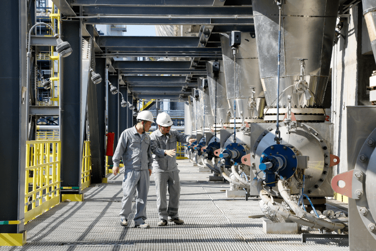 哈萨克斯坦IPCI项目PDH装置现场,施工经理雪映林与采购工程师谢君文在检查项目装置。(受访单位供图)
