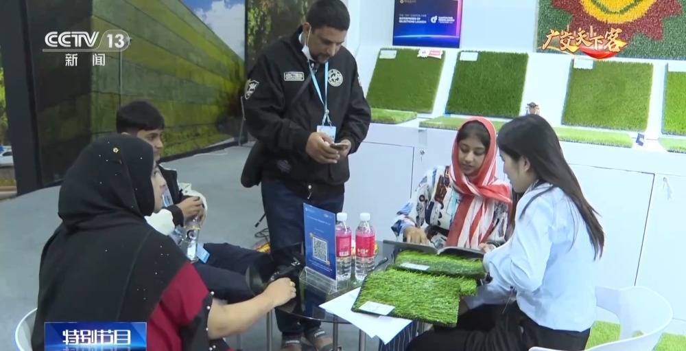 在广交会二期的园艺展区,记者看到仿真环保草坪等产品受到了许多外国客商的青睐。朱江峰是一名广州企业的负责人,深耕外贸领域十余年的他向记者表示,仿真草坪有非常广阔的市场前景。
