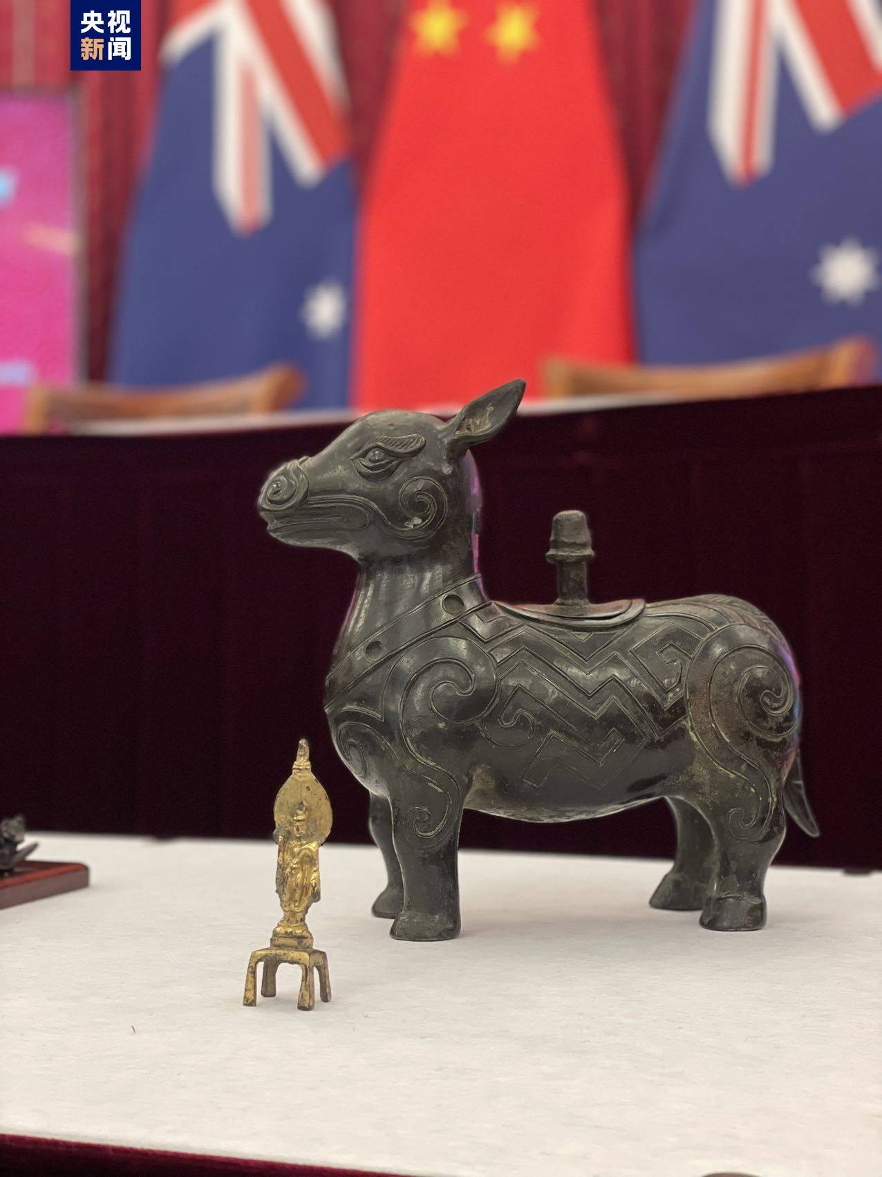 本次归还的文物包括潜龙化石、鎏金观音铜像和彩绘陶制人物骑马俑。经初步鉴定,潜龙化石属于晚侏罗世到早白垩世的恐龙化石,而观音铜像和骑马俑的历史可追溯到唐代甚至北朝,具有珍贵的历史文化价值。同时,澳大利亚国家美术馆还另外向中国政府捐赠了一件牛形的盛酒礼器——“牺尊”。我国文物专家通过对文物基本信息和图片的判断,鉴定这件“牺尊”用途为酒器,是明清或近代的仿古文物艺术品。