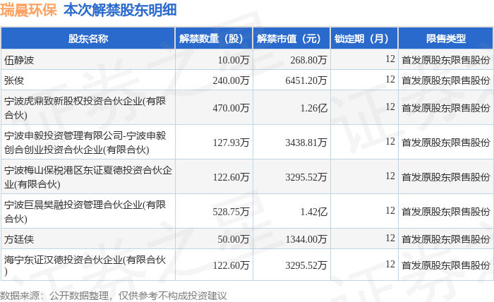 本次解禁涉及股东明细见下表: