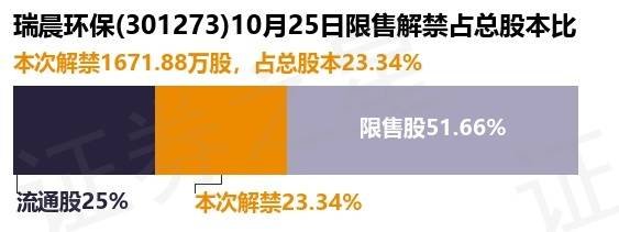 证券之星消息,根据市场公开信息整理,瑞晨环保(301273)于10月25日将有1671.88万股限售股份解禁上市,为公司首发原股东限售股份,占公司总股本23.34%。最近一年内,该股累计解禁1791.04万股,占总股本的25.0%。本次解禁后,公司还有3701.25万股限售股份,占总股本51.66%。具体如下图所示: