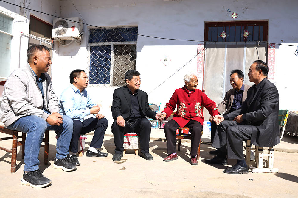 大侯乡任楼百岁老人刘玉梅面容慈祥,精神矍铄,神采奕奕,她开心地与慰问人员拉家常,直夸党的政策好。她讲到兴奋时还跳起了健身舞,轻盈的舞姿赢得了大家热烈掌声。