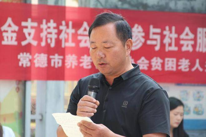 常德市养老行业协会秘书长杨万里发表讲话,表达了对志愿者到来的欢迎以及对特困老人的关爱与重视,在现场对需要心理辅导的老人进行辅导治疗。