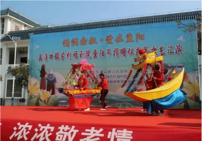 醉人的红绸,震天的锣鼓。舞蹈《开门红》将节日氛围瞬间拉满。雷家坪社区文艺志愿服务队的志愿者们为老年朋友们带来本地独具特色的民俗文化表演,花鼓子、花担、鱼鼓、莲响、鼓儿车、采莲船轮番上演,自导自创的三句半《平安建设看东瀼》防诈骗宣传赢得现场阵阵掌声。