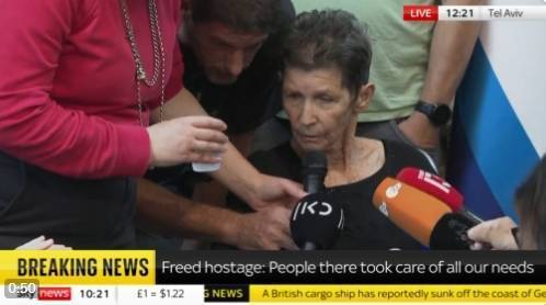 以色列获释老奶奶利夫希茨召开新闻发布会 截图自英国“天空新闻网”