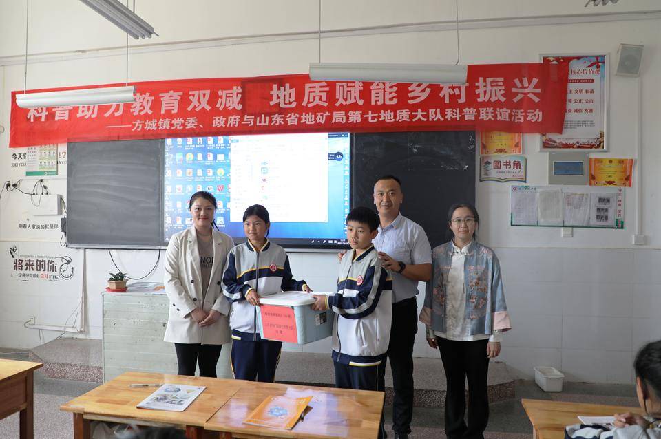 10月23日,山东省地矿局第七地质大队沂蒙地矿流动小讲堂在方城镇党委、政府的支持下,分别走进方城小学,方城中学、新桥小学、新桥中学,开展“科普助力教育双减,地质赋能乡村振兴”公益科普活动。方城镇副镇长邵长花,四所学校校长,七队党委委员、副队长孙永胜,信息宣传中心主任冯雪立等参加活动。