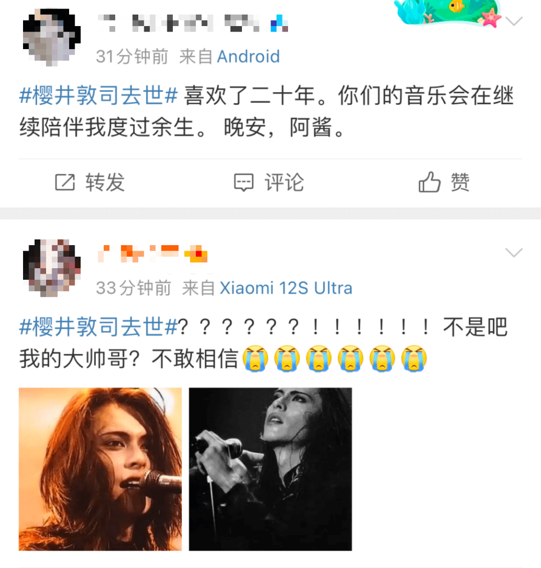 经纪公司的声明中还表示,今年是樱井敦司所在乐队出道第35年,想不到樱井敦司忽然病逝,“这件事发生得太突然,我们仍然感到难以置信和困惑,成员和工作人员都无法用语言表达深深的悲伤。”