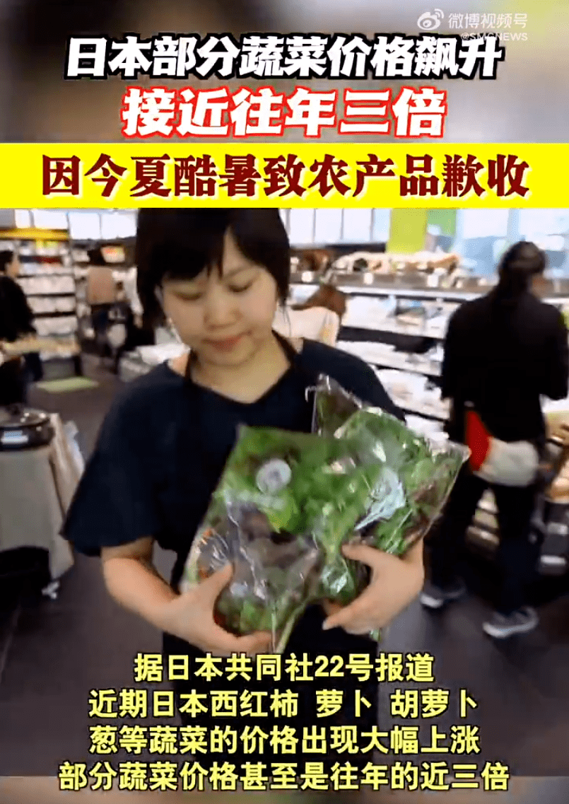 共同社分析称,日本今年夏天遭遇酷暑,导致农产品歉收,这推升了一些水果蔬菜的价格。报道还认为,日本家庭的财务状况已经受到汽油、电费和食品接连涨价拖累,近期蔬菜涨价可能会导致日本家庭雪上加霜。
