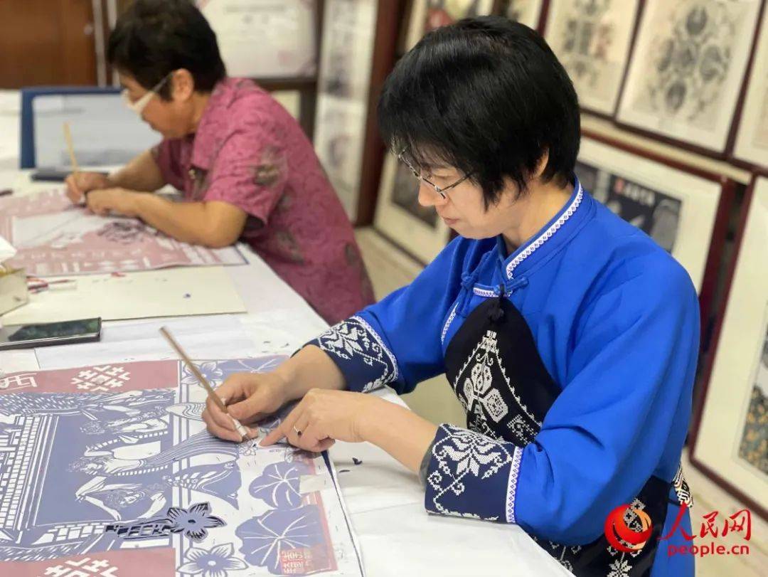 一把把凿刀,一方方蜡盘,一笔笔描绘……在湘西土家族苗族自治州泸溪县武溪镇,国家级非物质文化遗产踏虎凿花的州级传承人李铁骑和他的学徒在进行创作。