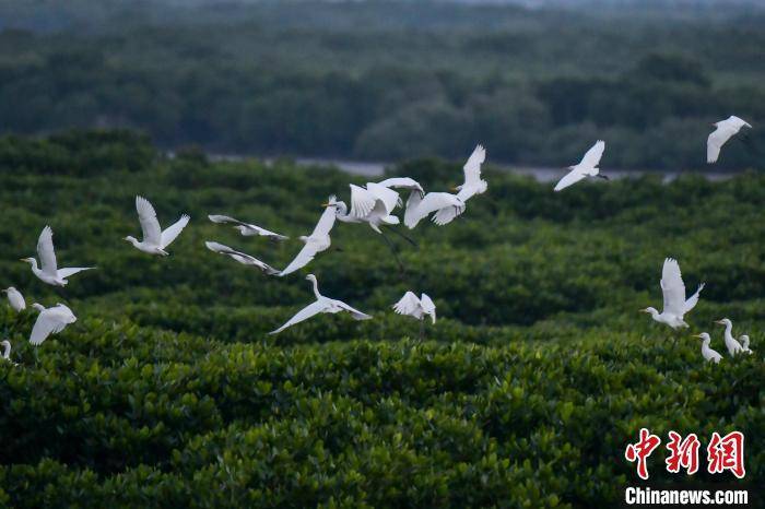 图为海南东寨港国家级自然保护区内,一群白鹭在红树林间嬉戏。(资料图)骆云飞 摄