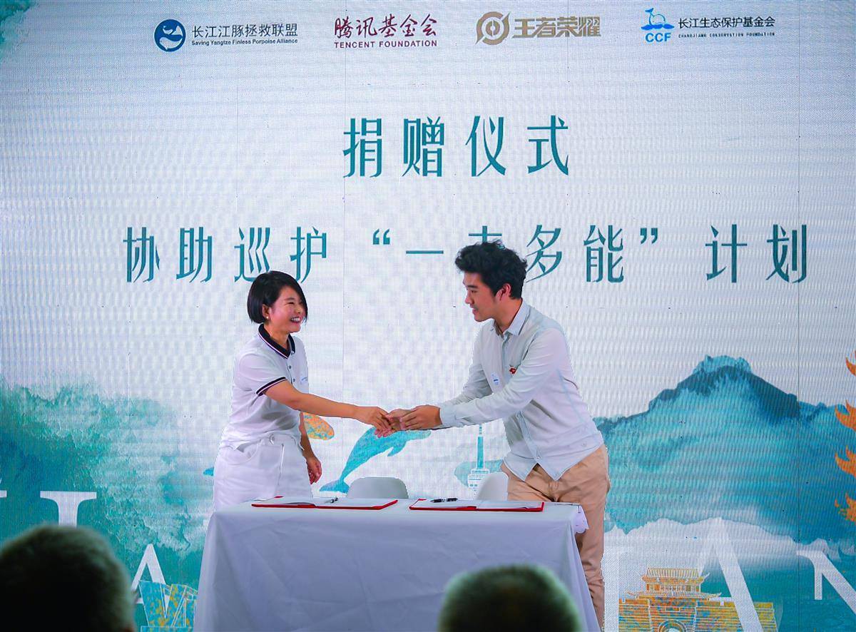 同时,CCF向王者荣耀英雄角色阿古朵授予“长江生态数字保护大使”荣誉称号;腾讯公益慈善基金会与王者荣耀还向CCF捐赠善款,用于支持《协助巡护“一专多能”计划》项目,帮助长江协助巡护队伍探索“一专多能”的机制,在长江大保护中发挥更大的作用。