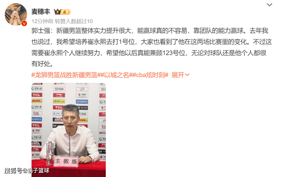 赛后老叔在采访中又为小崔提出了新要求,郭士强说道:“新疆男篮整体实力提升很大,能赢球真的不容易,靠团队的能力赢球。去年我也说过,我希望培养崔永熙去打1号位,大家也看到了他在这两场比赛里的变化。不过这需要崔永熙个人继续努力,希望他以后真能兼顾123号位,无论对球队还是他个人都很有好处。”