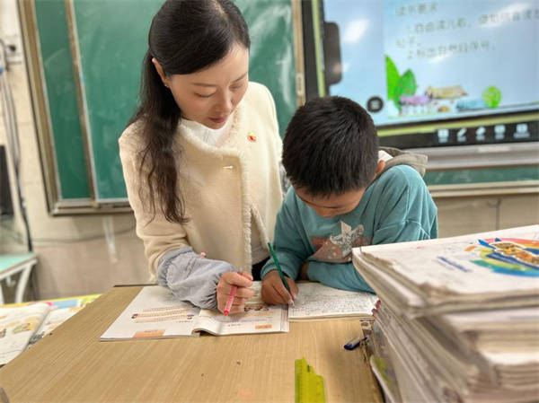 第三校区教科室主任成莉老师在盱眙县古城小学支教,她对学生不仅有耐心,更有爱心。课下,学生学习中遇到难题,都愿意向她请教,她都会耐心地给予指导。