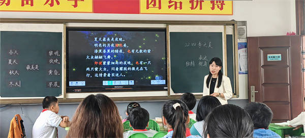 第三支部书记王书花老师在盱眙县淮河小学支教,她为全体语文老师开设的公开课《四季之美》,引导学生品读语言文字,感悟作者清少纳言独特的表达、独特的视角、独特的情趣。