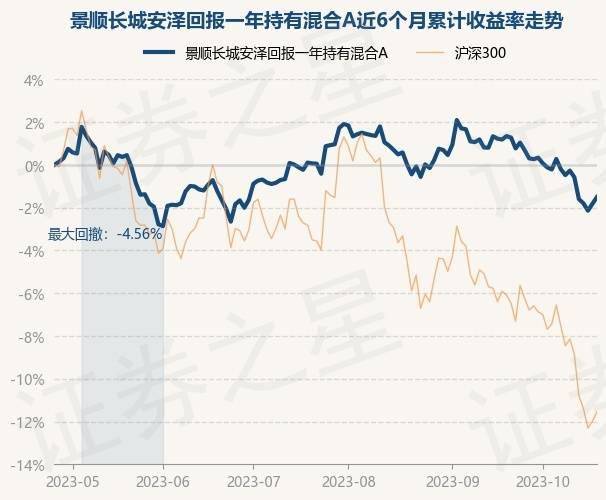 证券之星消息,10月25日,景顺长城安泽回报一年持有混合A最新单位净值为1.0995元,累计净值为1.0995元,较前一交易日上涨0.32%。历史数据显示该基金近1个月下跌2.16%,近3个月下跌2.36%,近6个月下跌1.52%,近1年上涨5.6%。该基金近6个月的累计收益率走势如下图: