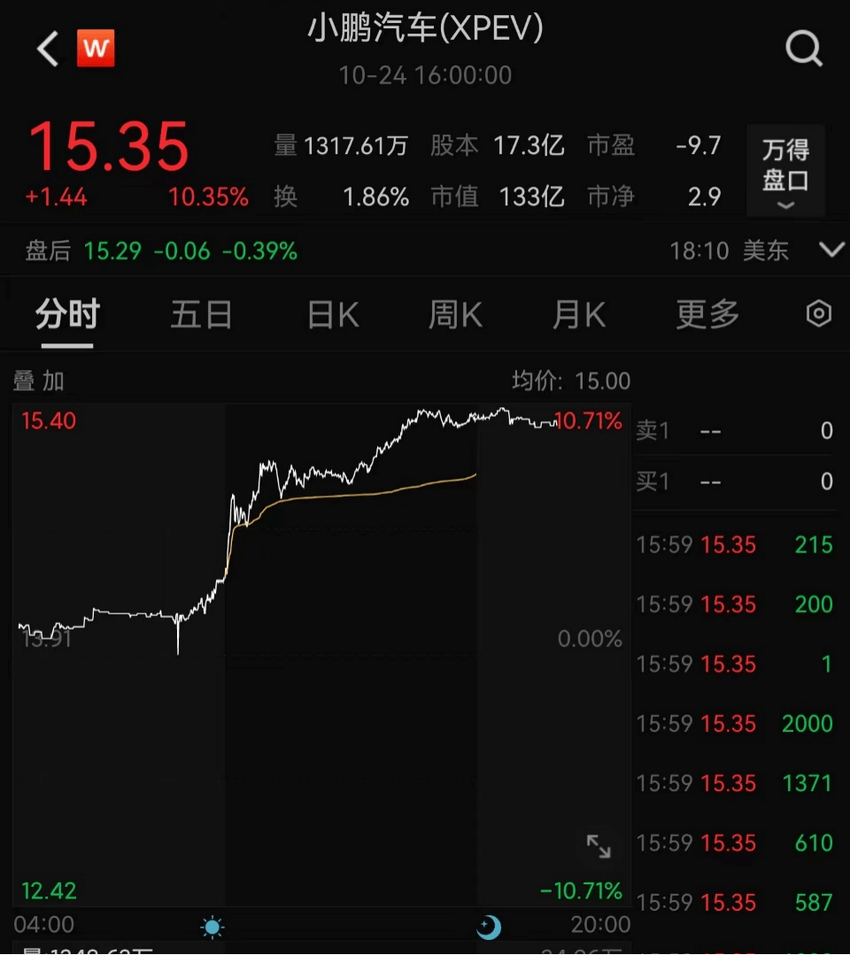 中概指数连续两日强势跑赢美股大盘,纳斯达克金龙中国指数(HXC)涨约4%,上逼6400点。热门中概股全线上涨,小鹏汽车涨超10%。