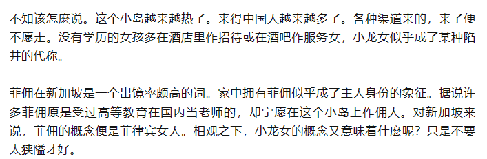 《联合早报》报道此事时在文章中讳莫如深,但又“隐隐约约”,大概也是出于本地人对“小龙女”们的无可奈何。