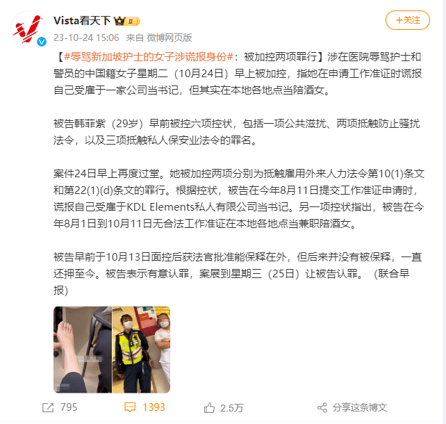 昨天这位网红又被曝光,新闻称新加坡法院调查发现她涉嫌身份造假,谎称自己受雇于当地某公司当书记(可能类似文秘一类吧),其实是在新加坡当地当陪酒女,新闻中称“在当地各地”当陪酒女,估计可能也是流莺一类,不驻场。
