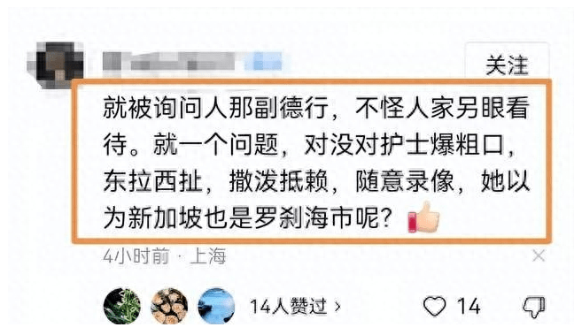 实际上中国女网红大闹新加坡医院辱骂护士,并严重干扰当地执法单位这件事本身确实存在一些让同胞感到不舒服的地方: