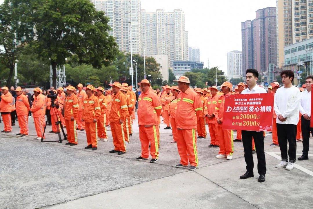 在充满喜庆的节日气氛中,南阳大统集团总裁徐韵博将写着“大统集团爱心捐赠2万斤面粉、2000斤食用油”的展示牌,递交到市政环卫中心主任李伟手中。一袋袋面、一桶桶油饱含着温暖和情意,将作为节日的礼物送达广大环卫工人手中,以表达对我们城市“美容师”的慰问和敬意。