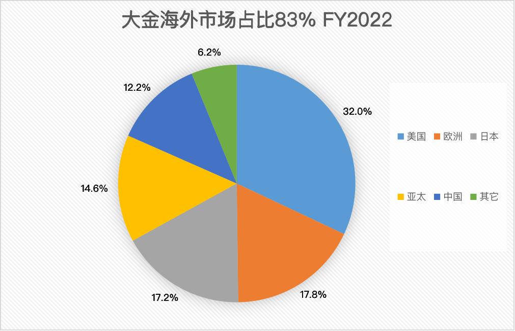 大金的对外拓展,主要集中在三块市场:中国、欧洲和美国。