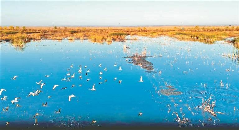 深秋时节,在北大荒集团哈拉海农场有限公司境内的哈拉海湿地,仍旧聚集着数百种鸟类,哈拉海湿地良好的生态环境已经成为珍稀鸟类的重要栖息地。
