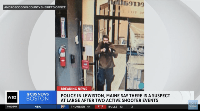 枪击案发生后,缅因州刘易斯顿警方表示,仍有嫌疑人在逃 图自美媒CBS