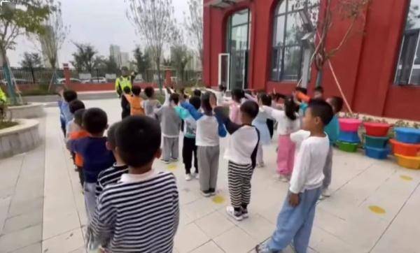 民警积极引导小朋友们回答各类交通安全问题,培养小朋友们从小养成自觉遵守交通法律法规的意识,引导养成良好的出行习惯。同时,还教小朋友们做指挥手势操,熟悉各种交通指挥手势的意义。这堂轻松有趣的交通安全知识课,也受到了小朋友们的热烈欢迎。
