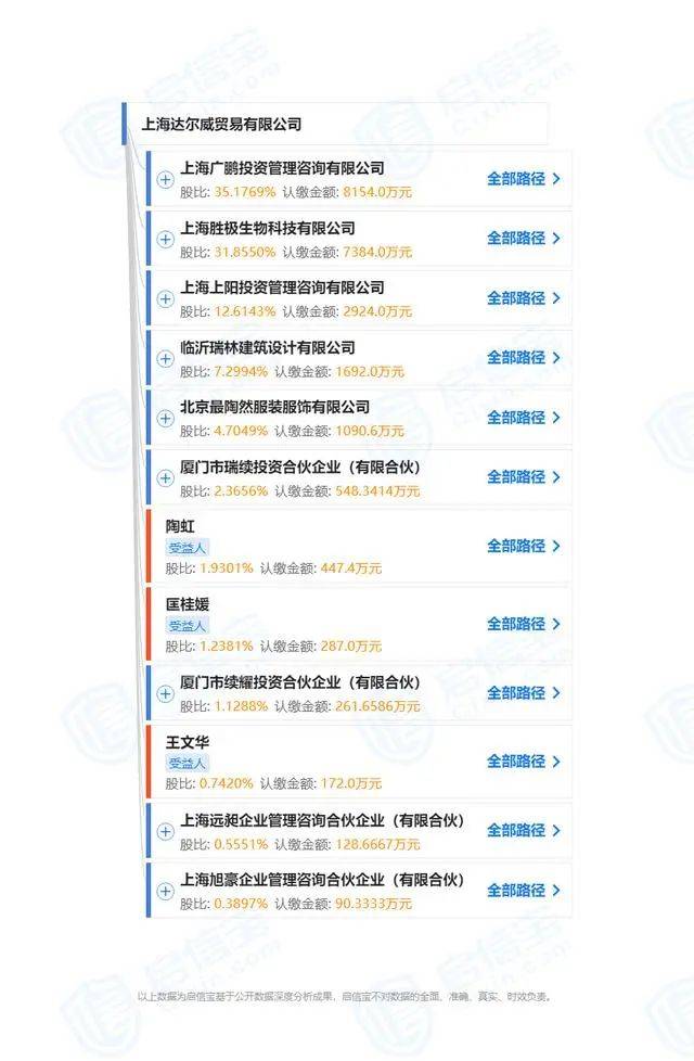 据启信宝,上海达尔威贸易有限公司成立于2013年6月,注册资本为2.3亿元,法定代表人是林吉荣(即知名演员林瑞阳),企业性质为有限责任公司(外商投资企业与内资合资) 。目前,达尔威主营业务包括,从事货物及技术的进出口业务,化妆品、针纺织品、服装鞋帽、办公用品、日用百货等。