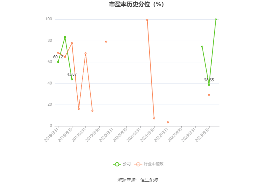 市盈率为负时,不显示当期分位数,会导致折线图中断。