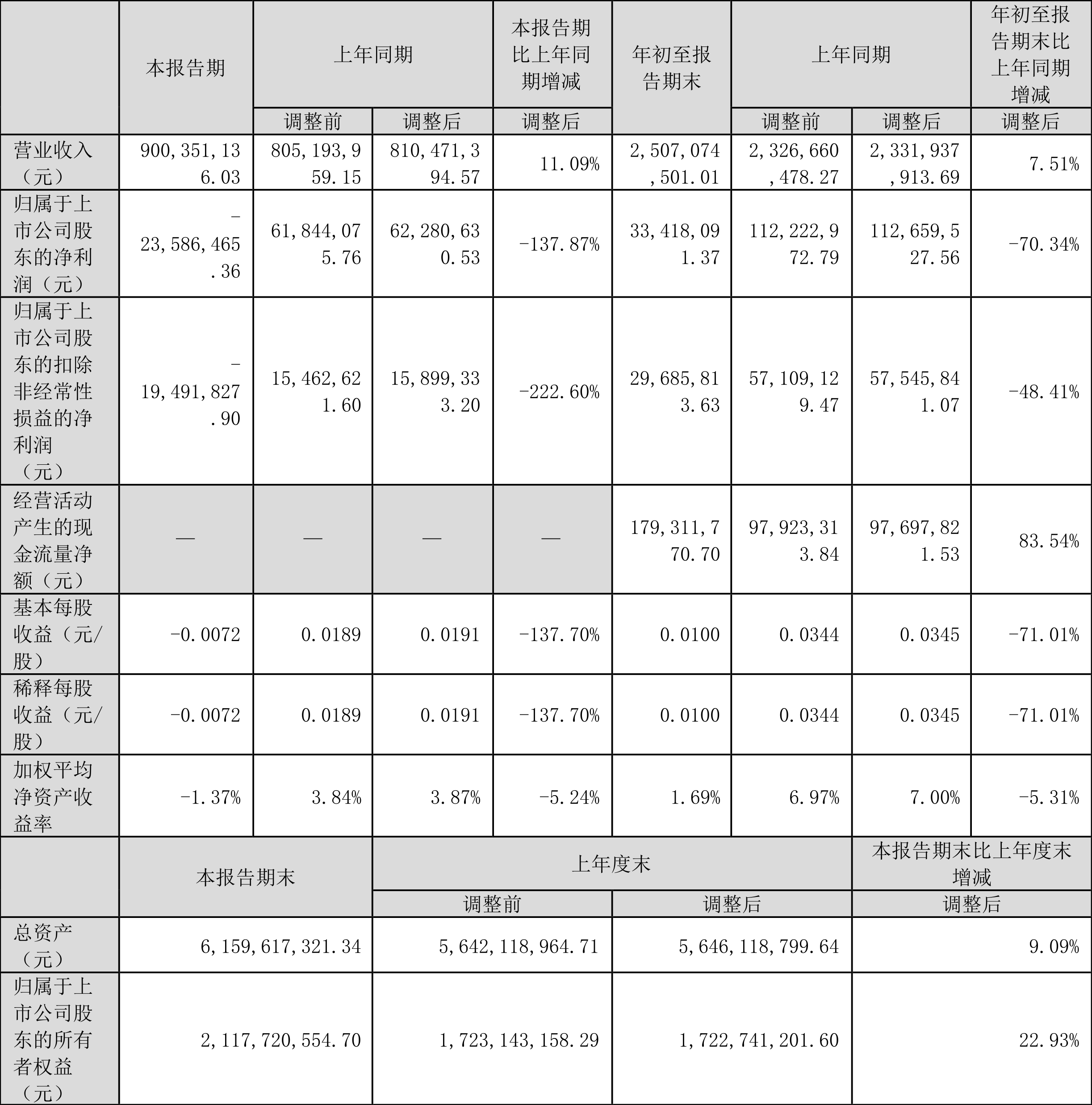 根据三季报,公司第三季度实现营业总收入9.0亿元,同比增长11.09%,环比增长8.67%;归母净利润-2358.65万元,同比下降137.87%,环比下降166.57%;扣非净利润-1949.18万元,同比下降222.60%。