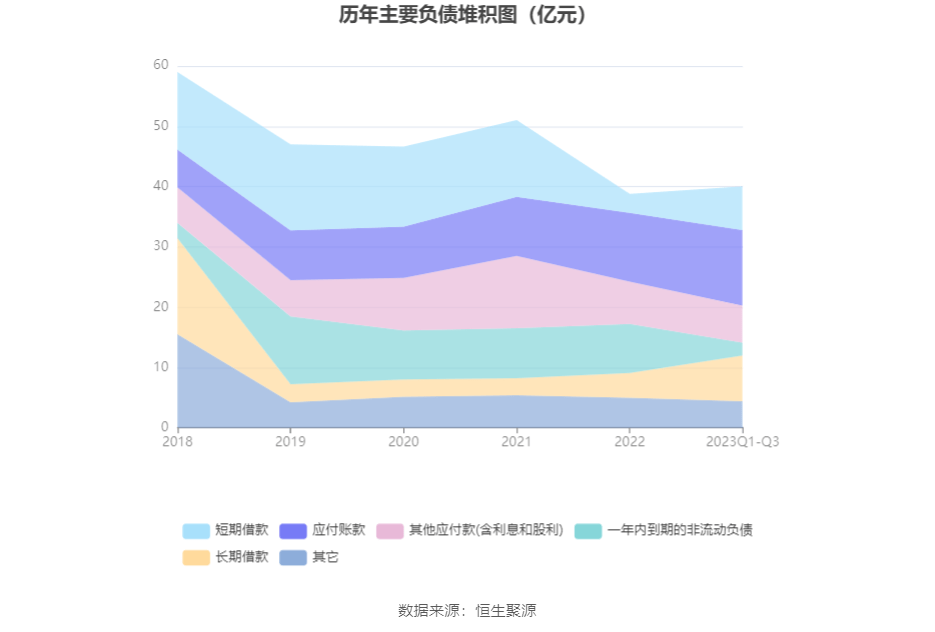 负债重大变化方面,截至2023年三季度末,公司一年内到期的非流动负债较上年末减少73.77%,占公司总资产比重下降10.95个百分点;短期借款较上年末增加130.77%,占公司总资产比重上升6.20个百分点;长期借款较上年末增加84.68%,占公司总资产比重上升5.04个百分点;应付账款较上年末增加9.77%,占公司总资产比重上升0.13个百分点。