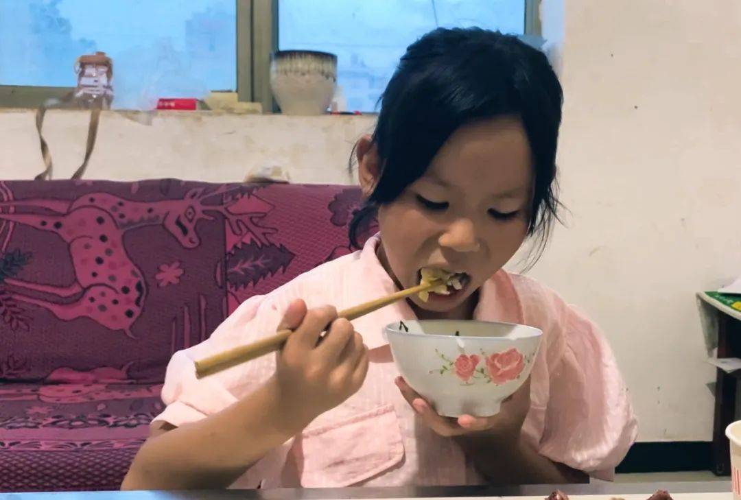 “有妈妈的孩子真好啊。”看着别的孩子每天都有爸爸、妈妈接送,康博十分羡慕,但他只能偷偷地掉眼泪,每次还要安慰妹妹和弟弟。康博有时在想,如果自己做多一点,让妈妈不那么累,妈妈是不是就能回来了。康博的学习一直很刻苦,希望自己长大后有能力改变家里的生活。图为妹妹在吃饭。