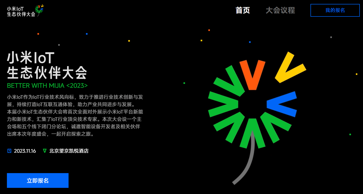 IT之家 10 月 27 日消息,小米 IoT 生态伙伴大会将于 11 月 16 日举行,地点位于北京望京凯悦酒店,现已开启报名。