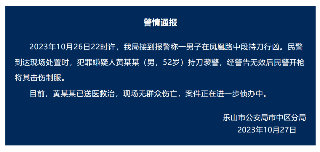 原标题:乐山通报:男子当街行凶并袭警,被民警开枪制服