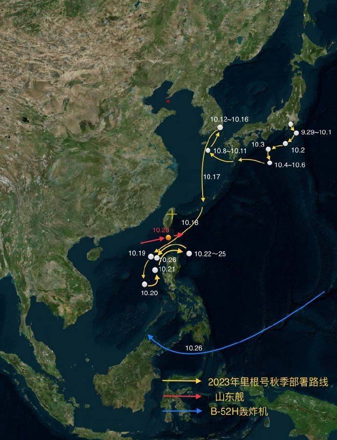 与此同时,台防务部门的通报也提到,26日台军在台岛南部海域发现了美军数架电子侦察机和反潜直升机,一度曾飞往东沙海域,台军方据此推断美军航母打击群疑似在寻找解放军潜艇,水下恐有潜艇正在与山东舰会合。