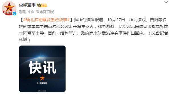 原标题:缅甸媒体:缅北多地爆发交火,战事激烈