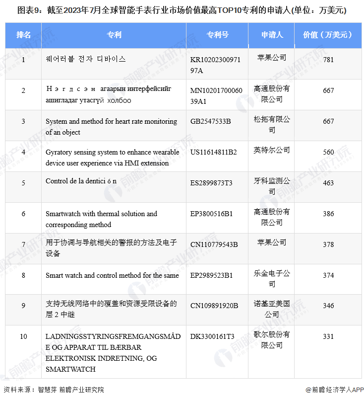 近年来,智能手表已成为各大科技公司重点布局的智能穿戴设备之一。在全球智能手表市场中,苹果公司和高通分别拥有两项最高市值的专利。其中,苹果公司的专利价值最高,达到781万美元。