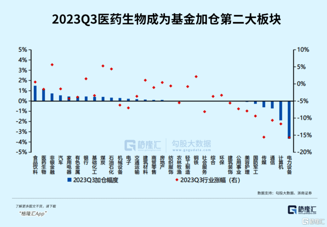 同时,近日公募基金的Q3报告显示,医药医疗板块也是被集体加仓前二的大主力,尤其是生物医药产业链,成为众多大机构的仅继食品饮料之下的头部持仓板块,比如药明康德这样的CPO巨头,被买成了被基金配置比例最高的前十大个股,环比二季度又有了明显加配。