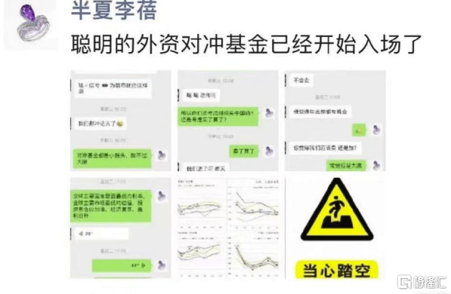 今天,李蓓发布朋友圈,直言“聪明的外资对冲基金已经开始入场了”,还发布一些点评盘面的对话,在最后还放了一个“当心踏空”的警示牌,再次显著表明抄底的观点。