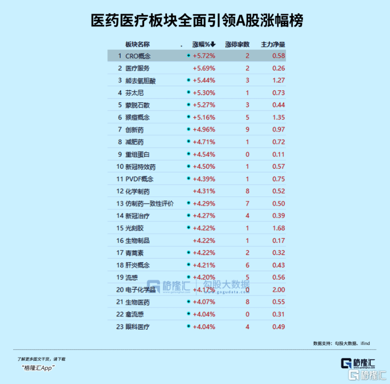 今天医疗医药大市场成为霸榜全A涨幅榜最多的板块,同样让人意外。