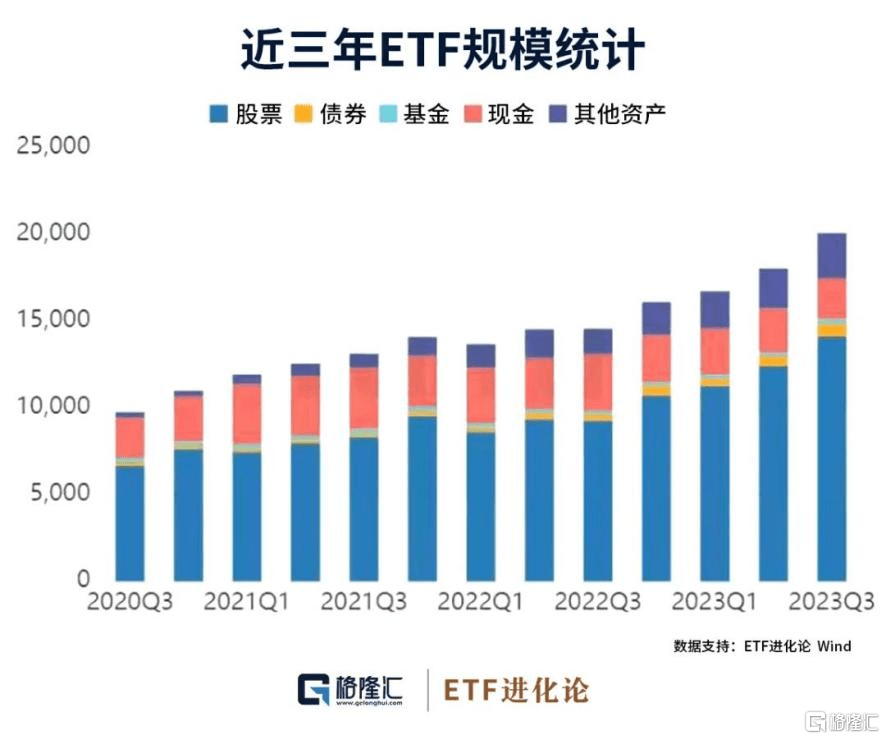 数据显示,截至三季度,ETF市场规模再创新高,达1.9万亿元,较上季度增长11.49%。其中,股票型ETF持续增加,规模达到1.41万亿元,环比增长13.71%。