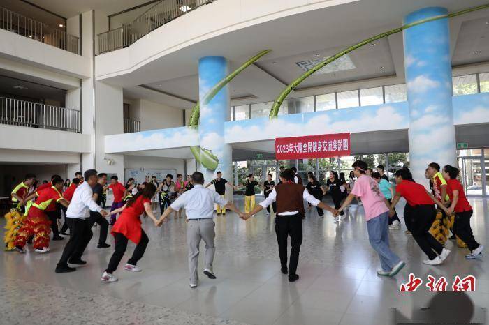交流团26日来到台北市立大学,大陆社会体育指导员展示了太极扇、彩带龙、花式跳绳等健身项目,台北市立大学学生表演了扯铃、霹雳舞、特技舞蹈等,大家还一起跳起锅庄舞。