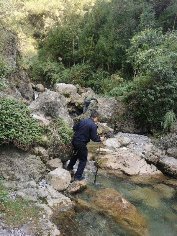 大家一边紧张搜寻一边大声呼喊孩子名字,在偌大的山区寻找孩子的踪影。警务人员在没有路的情况下,穿梭在悬崖峭壁之间。