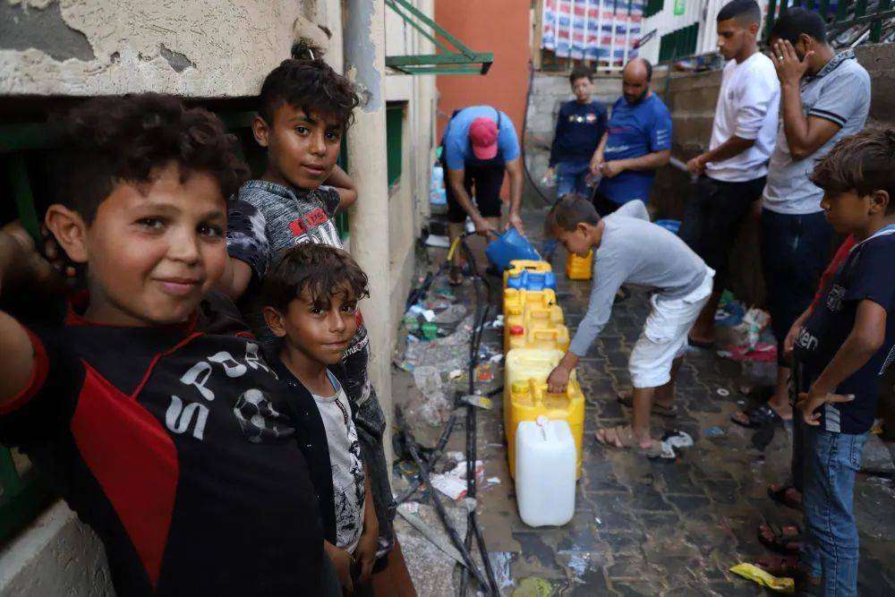 △10月26日,人们在加沙地带南部城市汗尤尼斯街头打水。新华社发(里泽克·阿卜杜勒贾瓦德摄)